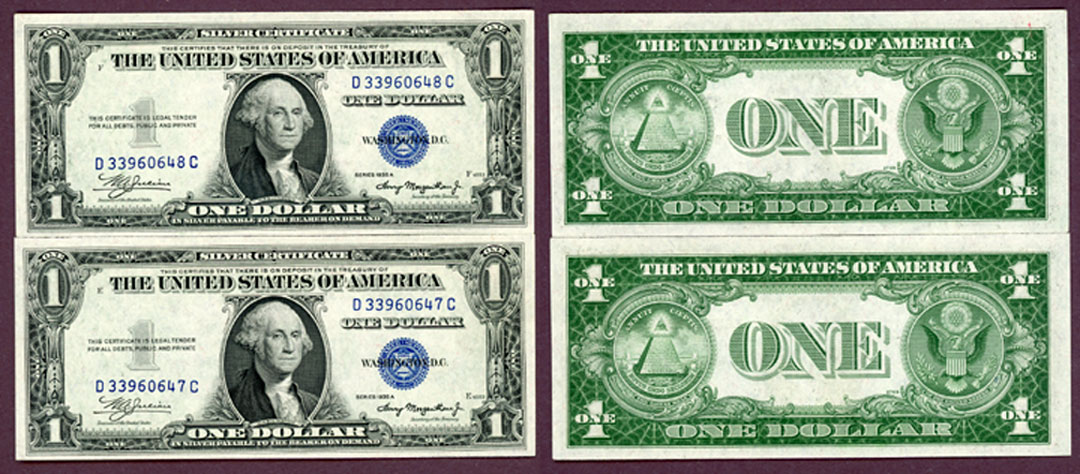 Item Number: SSC-206 Crisp Uncirculated - FR-1608 Julian/Morgenthau - No Motto - For the collector that likes Consecutive Numbered notes.$50.00