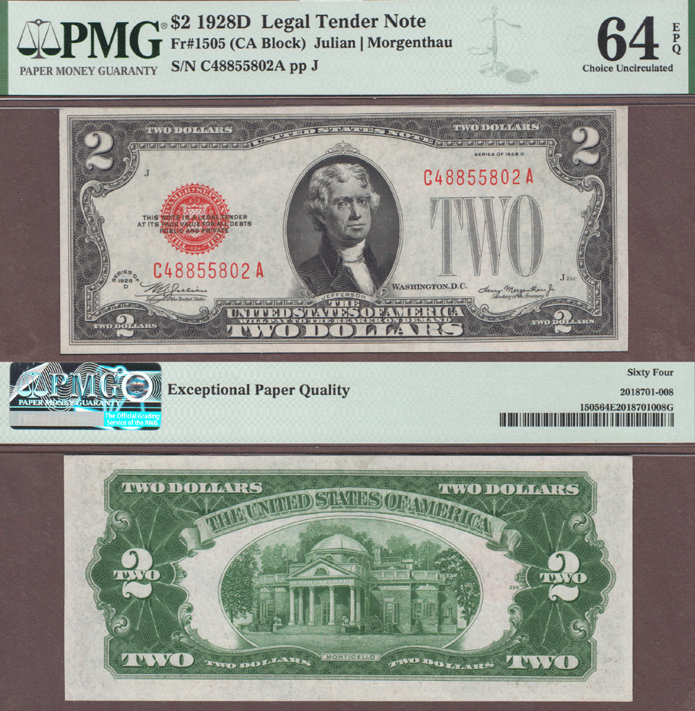 Item Number: SLTN-221 PMG Choice Uncirculated 64 EPQ - FR-1505 Julian/Morgenthau - "EPQ" Exceptional Paper Quality on this near GEM note.$130.00