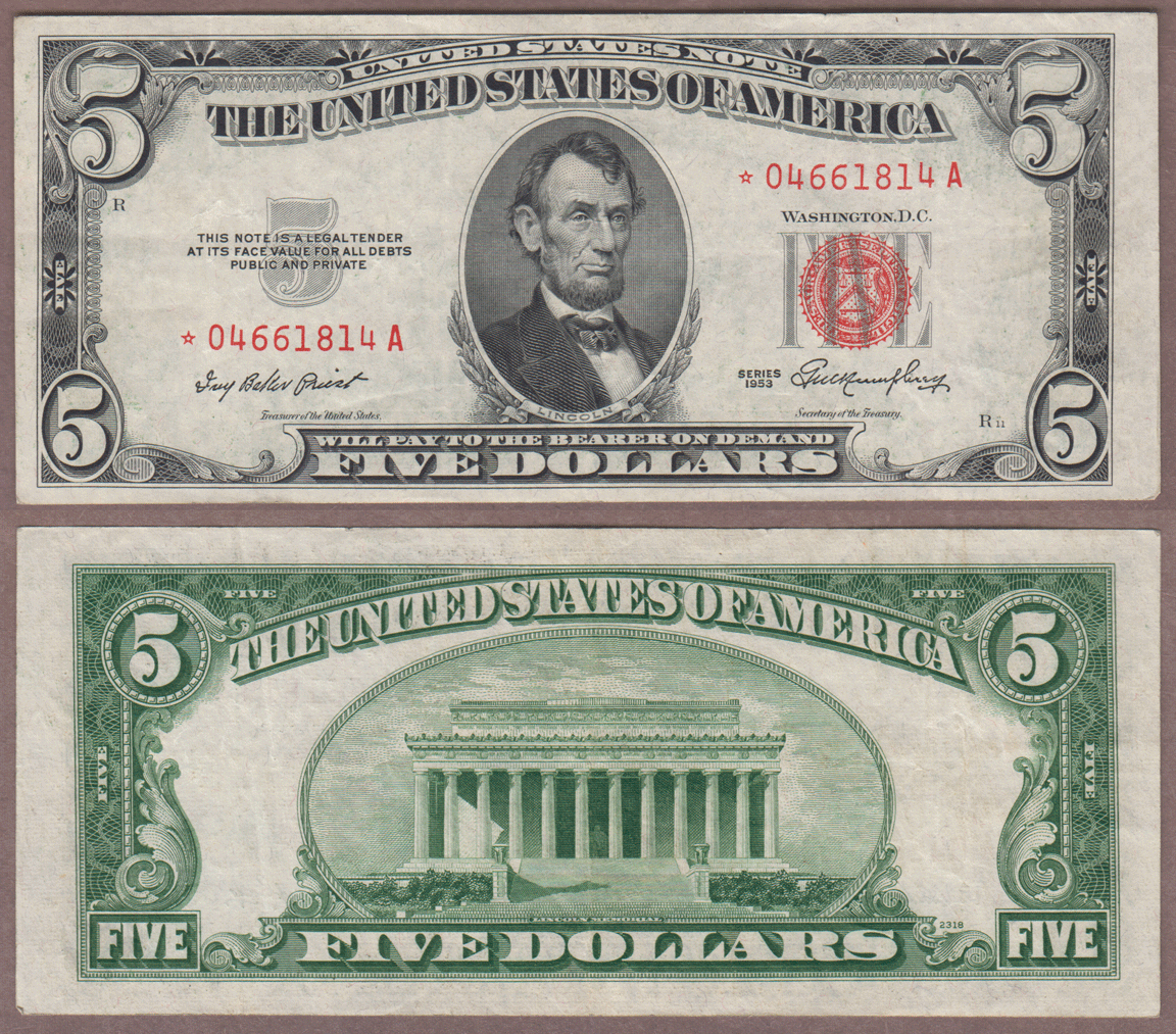 Item Number: SLTN-234 Very Fine - FR-1532* Priest/Humphrey - Problem free example of this harder to find $5.00 Legal Tender STAR note. $95.00
