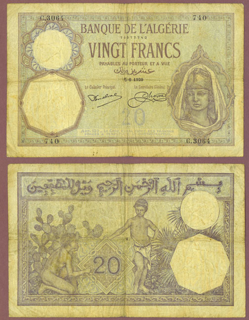 Fine - #77 Large size note 6 1/2" X 4 1/4". 6-8-1929 Dull purple on blue underprint. Woman at right. 2 Youths with plants on back. Watermark: Draped head of woman and Arabic seal on.