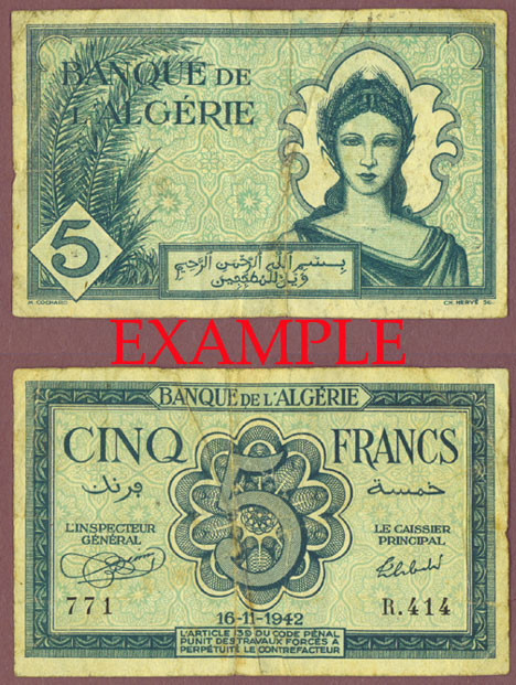Item Number: ALG-30E Very Good or Better - #91 Allied Occupation - Small size note approximately 4" X 2-1/2" Two shades of green on light tan paper. Woman at right on back.$3.00