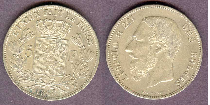Very Fine+ 5 Francs KM-24 .900 Silver. High grade VF.
