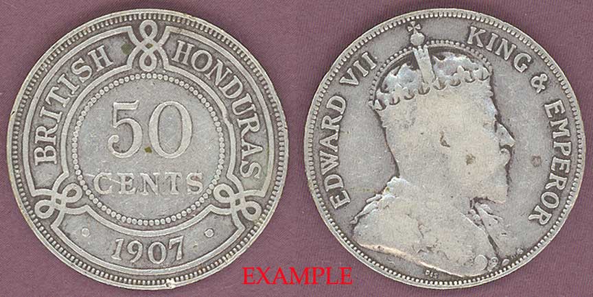 Item Number: BHON-23E Fine - 50 Cent KM-13 .925 Sterling Silver. Bust of King Edward VII. Two year Type Coin 1906 & 1907. Mintage of only 19,000$50.00