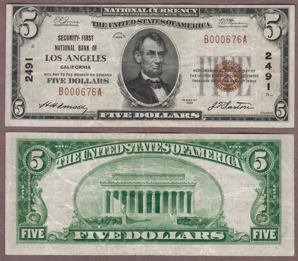 Item Number: SNBN-173 Very Fine - FR-1801-1 Security-First National Bank of Los Angeles California - Charter 2491$120.00