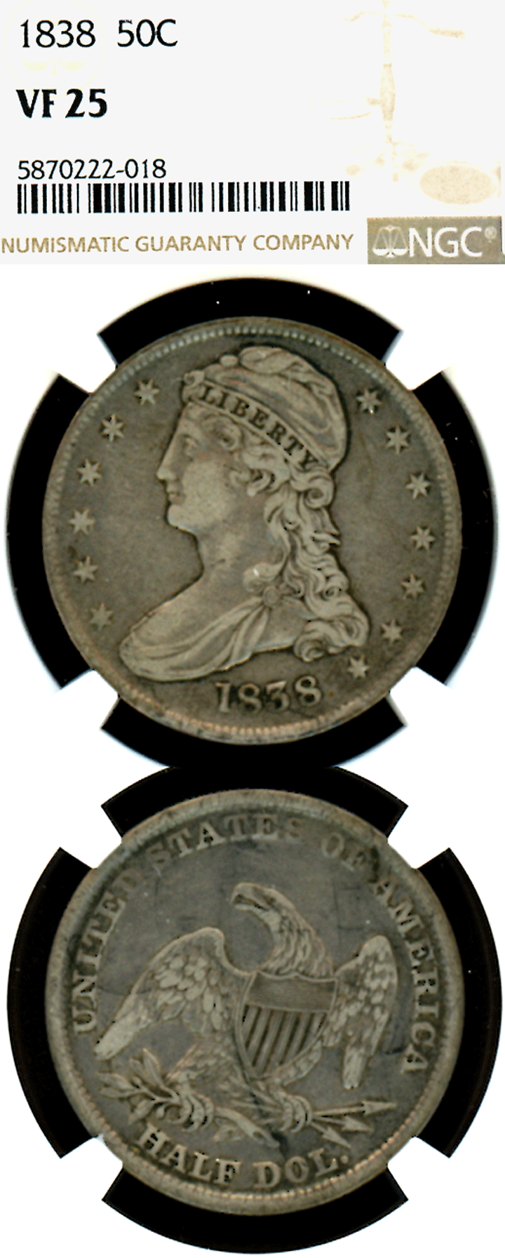 Item Number: EHD-138 NGC Very Fine 25 - Original uncleaned example from this short lived series. This type with HALF DOL. on reverse was made in 1838 & 1839 only. Mintage 3,546,000$195.00