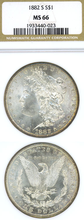 Item Number: MD-443 NGC MS-66 Super strike and super clean with beautiful cartwheel luster on this original GEM. Mintage of 9,250,000 $375.00