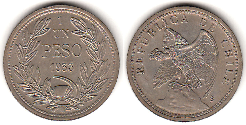 Item Number: CHILI-36 Uncirculated - Peso KM-176.1 Copper-Nickel 29 MM Nice luster with attractive toning.$10.00