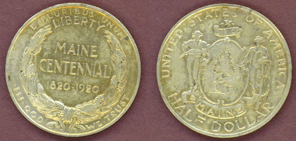 Extremely Fine+ Maine Centennial Half Dollar- The arms of the state of Maine appears on the obverse. Original uncleaned coin with nice mint luster. Low mintage of only 50,028