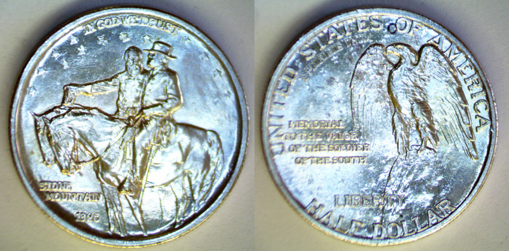 Choice About Uncirculated - Very flashy with great luster. Generals Robert E. Lee & Thomas "Stonewall Jackson" mounted on horseback are shown on the obverse.The reverse has a large eagle and "Memorial to the valor of the soldier of the South" Mintage of 1,314,709