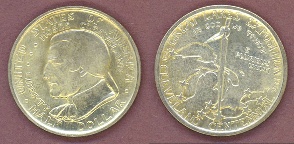 Uncirculated - Cleveland Centennial/Great Lakes Exposition Half Dollar - Great luster on clean original coin. Authorized in commemoration of the centennial celebration of Cleveland, Ohio, on the occasion of the Great Lakes Exposition. Mintage of only 50,030