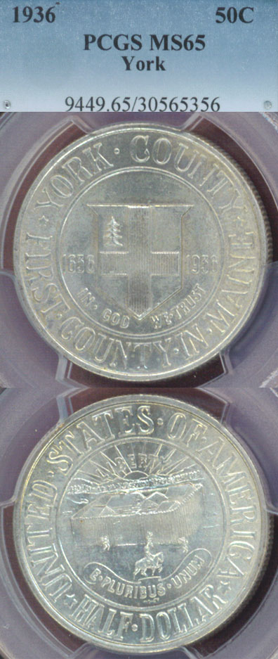 PCGS MS-65 - Great luster with clean original surfaces. York County, Maine Tercentenary Half Dollar - 300th anniversary of the founding of York County, Maine. Low mintage of only 25,015