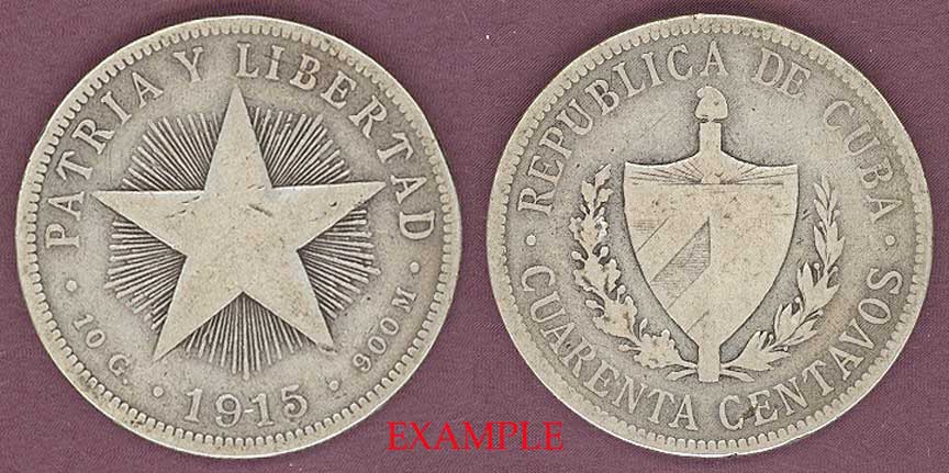 Very Good or Better - .900 Silver #14.3 Forty Centavo - National Arms within wreath, Date below star. You will receive a Very Good or Better Forty Centavo of this date.