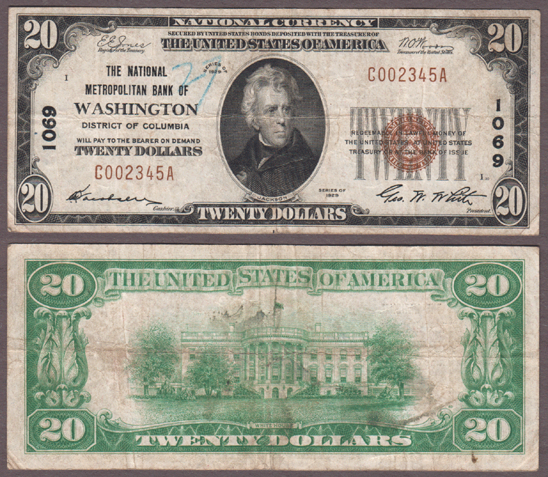 Washington DC 1929 $20.00 Type 1 FR-1802-1 Charter 1069