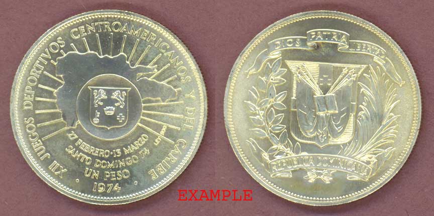 Item Number: Domr-23E Uncirculated - One Peso KM-35 .900 Silver. 12th Central American and Caribbean Games. Large silver dollar size. Mintage of 50,000$100.00