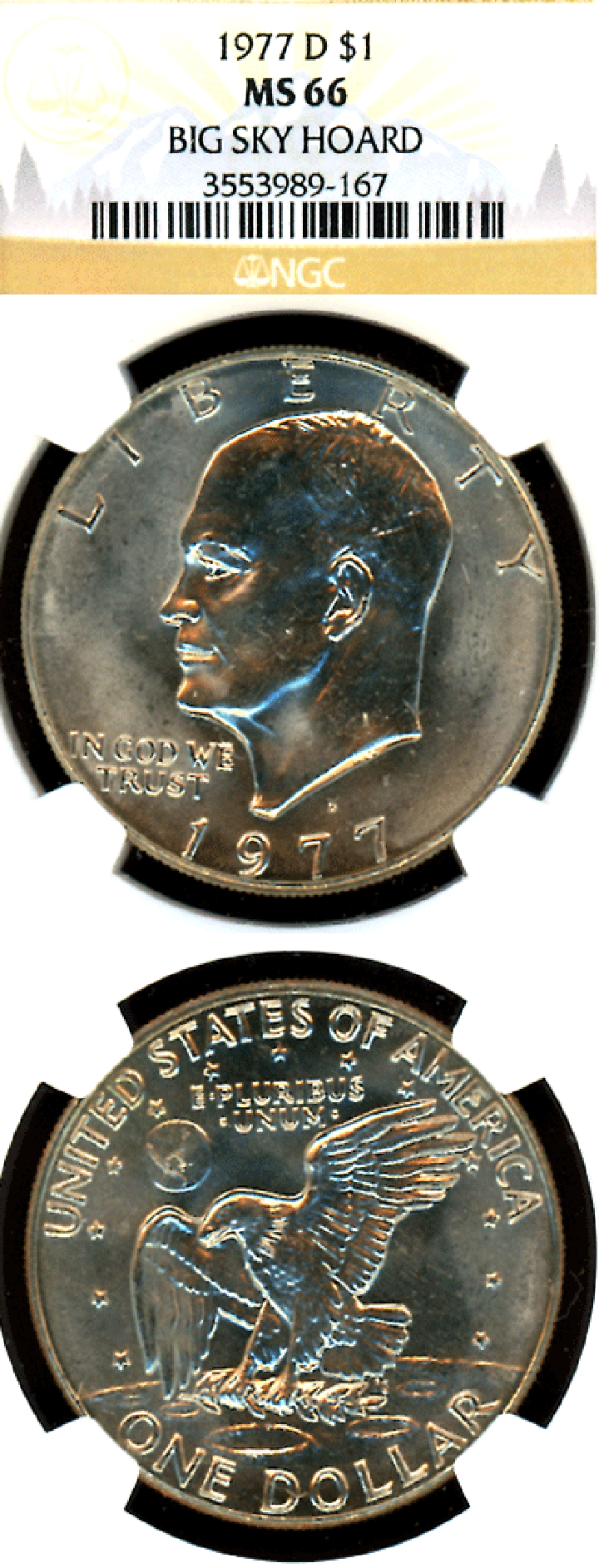 NGC Mint State-66 Big Sky Hoard - High grade GEM+ Copper-Nickel Clad Ike dollar. From the Montana Big Sky Hoard