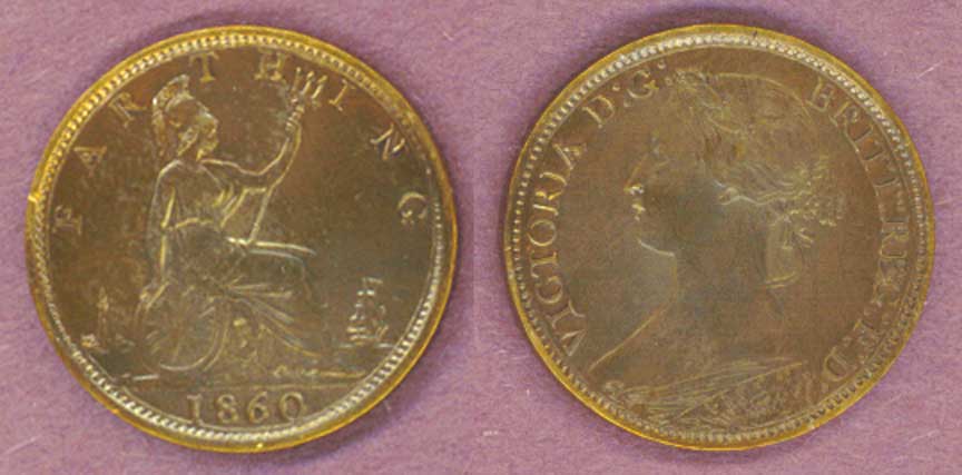 Item Number: GB-123 About Uncirculated - Farthing #747.2 Bronze - Head of Young Queen Victoria. Attractive with great detail and luster remaining. First Year of this Type.$65.00