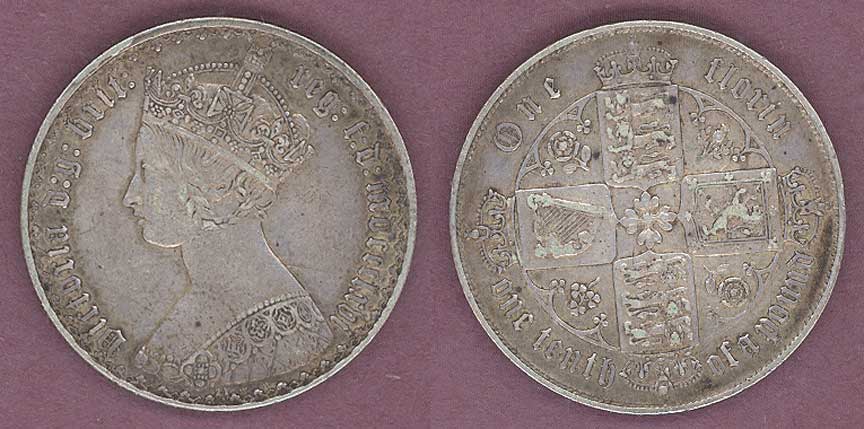 Item Number: GB-89 Very Fine+ Florin (Two Shillings) .925 Sterling Silver #746.3 Silver Two Shilling with Queen Victoria facing left and date in roman numerals. High grade VF with great details remaining. This two Shilling is as large as US Half Dollar.$120.00