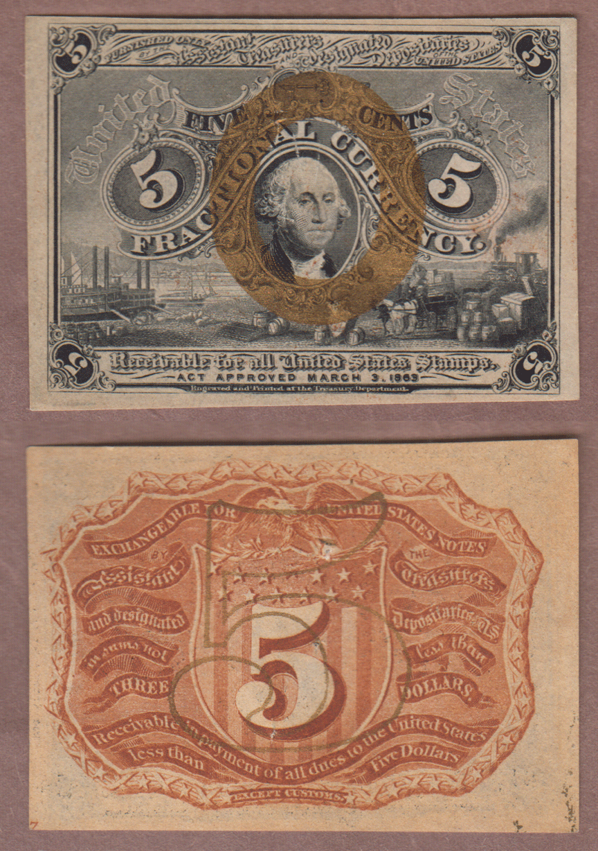 Item Number: FRAC-132 About Uncirculated Details- FR-1232 Second Issue - Issued 10-10-1863 thru 2-23-1867 - Has a few small pin holes . George Washington in Bronze oval frame. $65.00