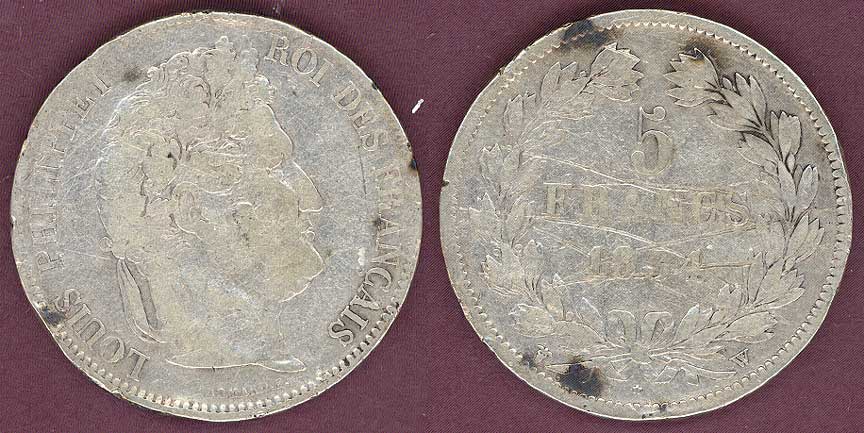 Item Number: F-51 Very Good+ 5 Francs #749.13 .900 Silver Lille Mint. Cleaned at one time with scratches on reverse. Large silver dollar size coin about 37 MM.$65.00