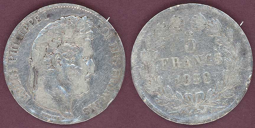 Item Number: F-50 Very Good+ 5 Francs #749.13 .900 Silver Lille Mint. Cleaned at one time. Large silver dollar size coin about 37 MM.$65.00