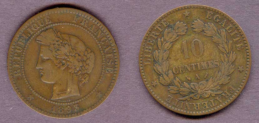 Very Fine - 10 Centimes #815.1 Bronze - Paris Mint.Original uncleaned coin.