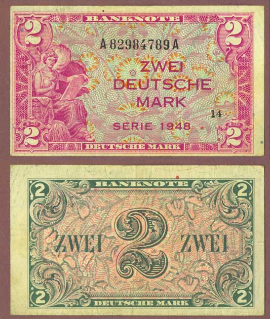 Item Number: GER-78 Very Fine+ #4-A Front is Lilac on blue-green underprint. Allegorical woman seated at left holding tablet. Back is green on reddish-pink underprint. Original no problem note with great color.$75.00