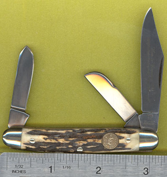 HR-32 HEN AND ROOSTER This Stockman style knife from the internationally known and trusted brand of Hen and Rooster knives is a piece to treasure forever. It has a beautiful Genuine Stag handle and also features an engraved master blade marking “Hen and Rooster 2000 - ‘World’s finest cutlery in the new millennium’”.