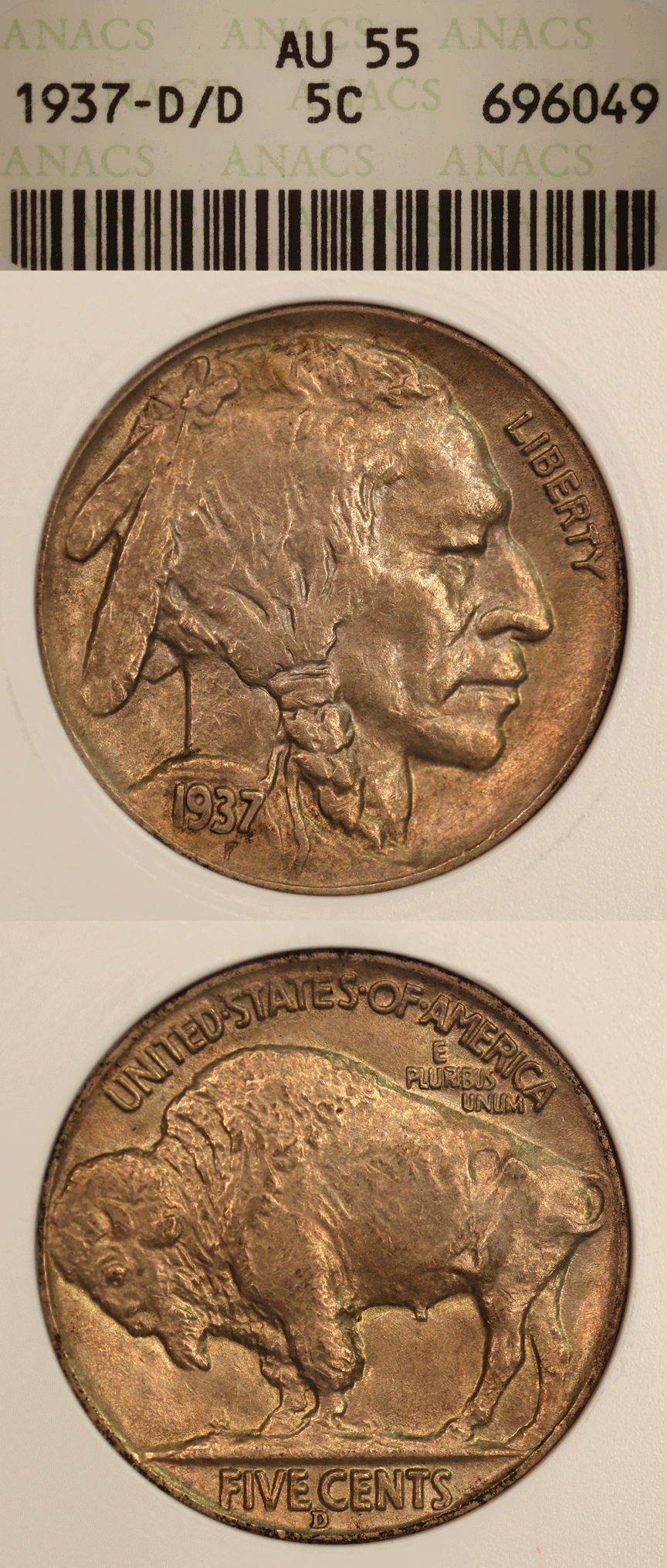 ANACS About Uncirculated 55 - D Over D Mint Mark