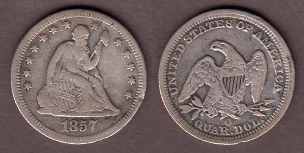 1857-O 25c US Seated Liberty silver quarter dollar