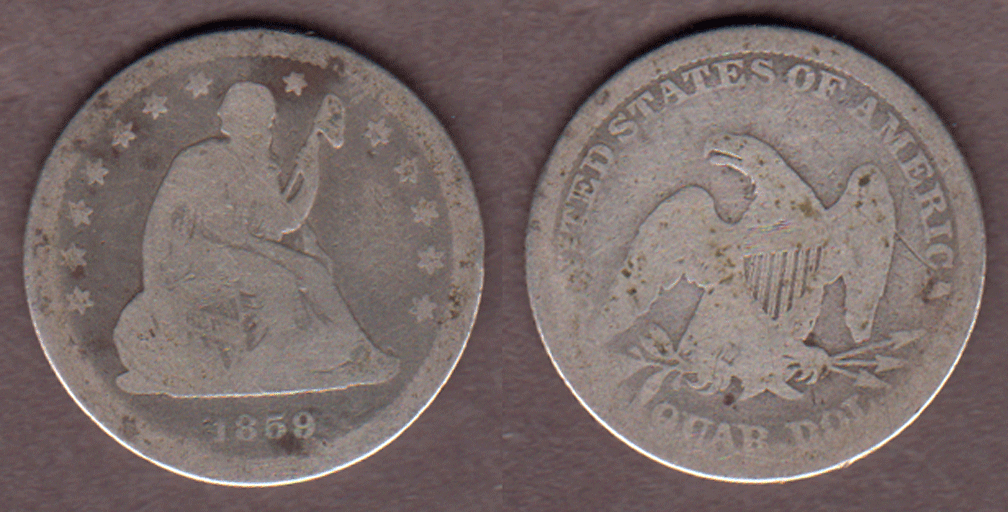 About Good - No-Motto quarter. Mintage of 1,343,200