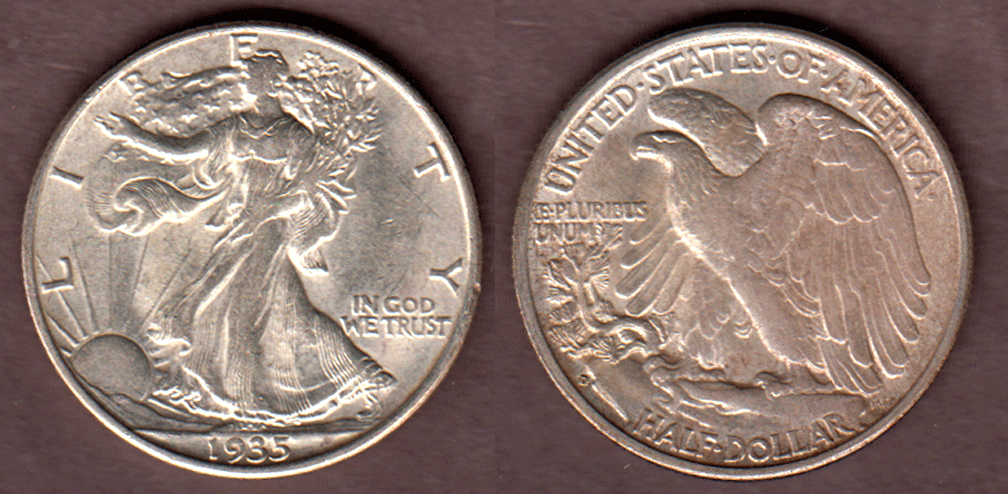 1935-D 50c US walking liberty silver half dollar