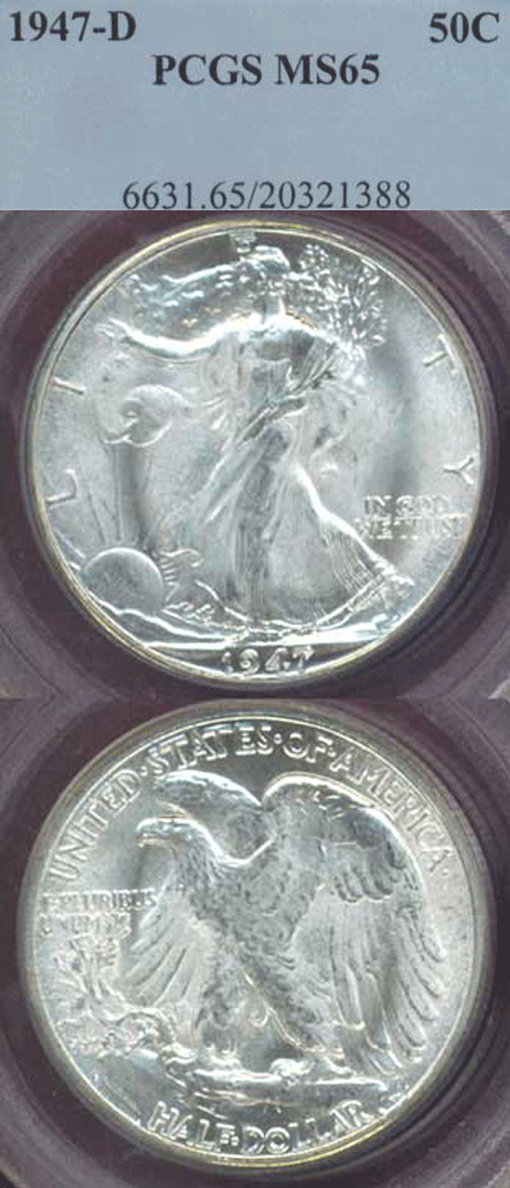 Item Number: WLHD-420. PCGS Mint State 65 - Bright, white and flashy. Last Year of the Walking Liberty half dollar$175.00
