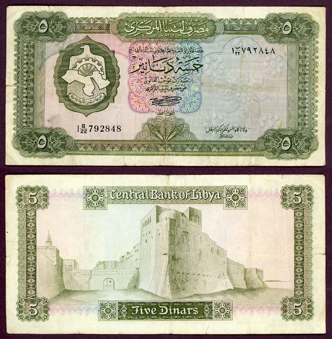 1971 ND 5 Dinars collectable paper money Libya