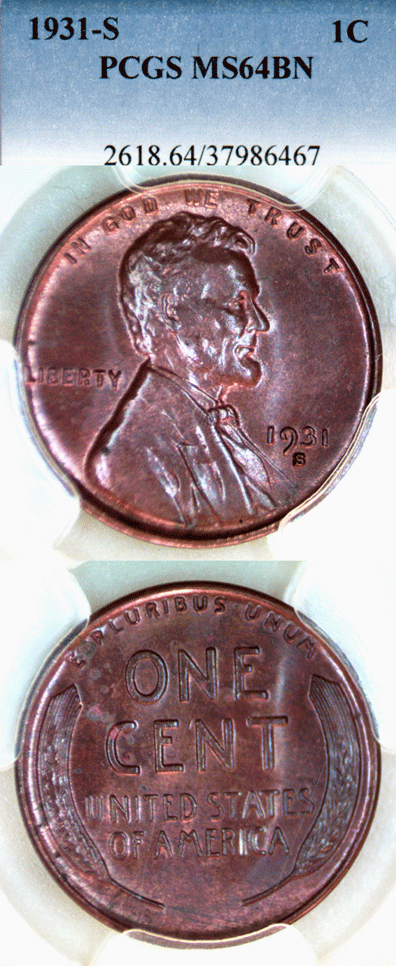 PCGS Mint State 64 Brown - Nice luster on original surfaces with traces of red. Very low mintage of only 866,000