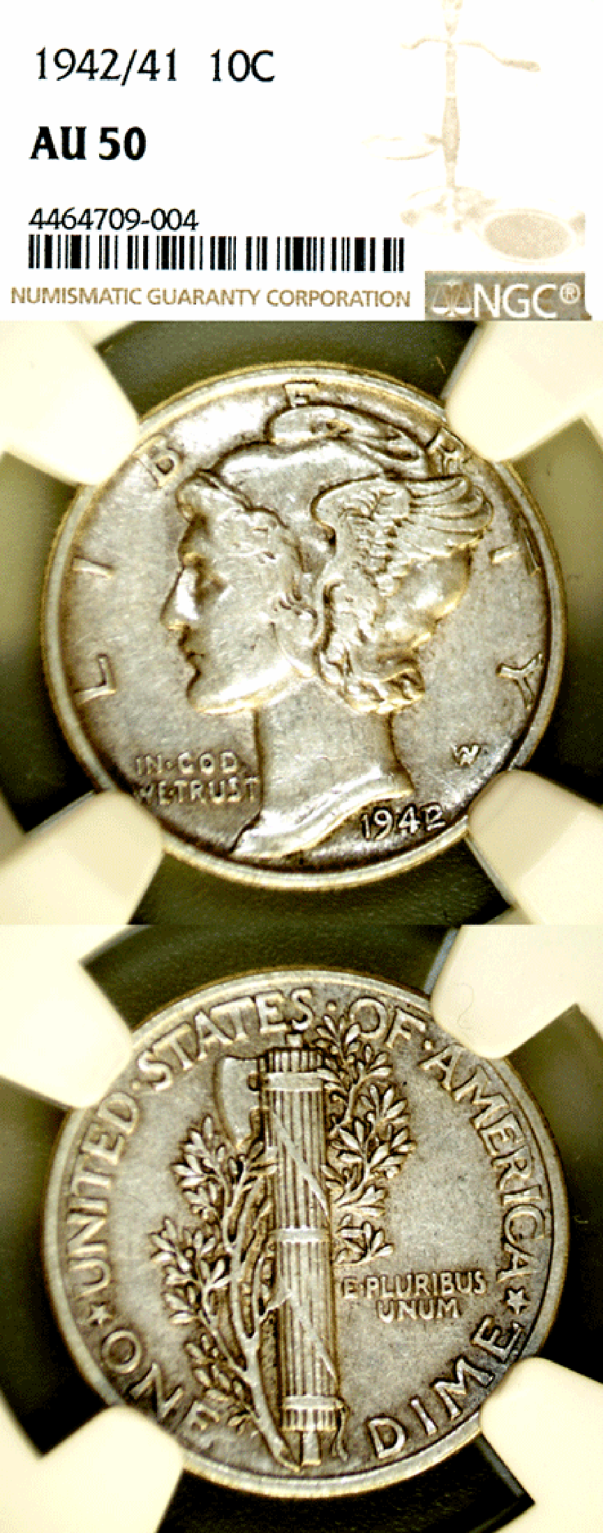 Item Number: D-609CC NGC About Uncirculated 50 - Attractive example of this popular Overdate. Normally found in lower grades. $1,175.00