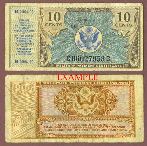 Item Number: MPC-36E Very Good or Better - Issued 3/22/48 to 5/20/51 Blue & brownish/black printing on face, Orange/brown back.$5.00