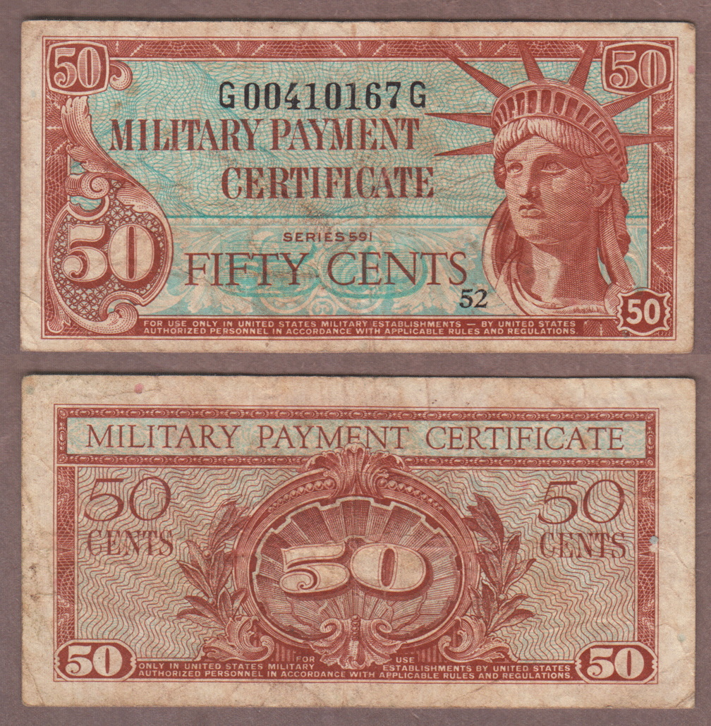Item Number: MPC-277 Fine+ Issued 5-29-61 to 1-6-64 - No holes, tears or stains. Brown with a light blue underprint Liberty at right, Brown/Light Blue back.$40.00