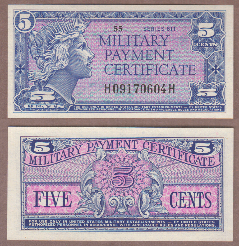 Item Number: MPC-289 Choice Uncirculated - Issued 1-06-64 to 4-28-69 Blue with multicolored underprint Liberty at left, Blue/Violet back.$50.00