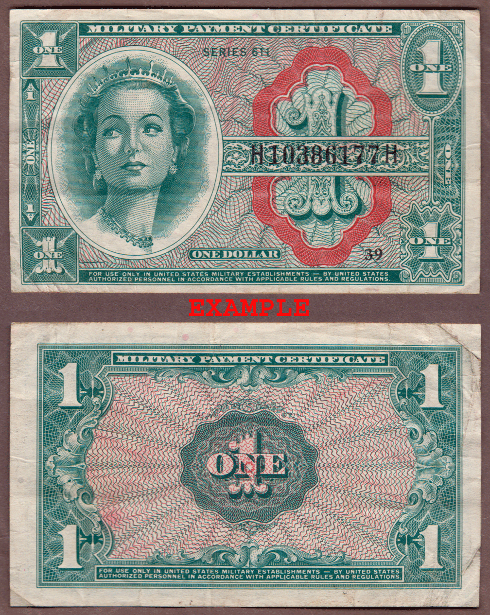 Very Fine or Better - Issued 1/6/64 to 4/28/69 Green with red around 1 at right, face of women with crown at left. Back is green with multicolored underprint.