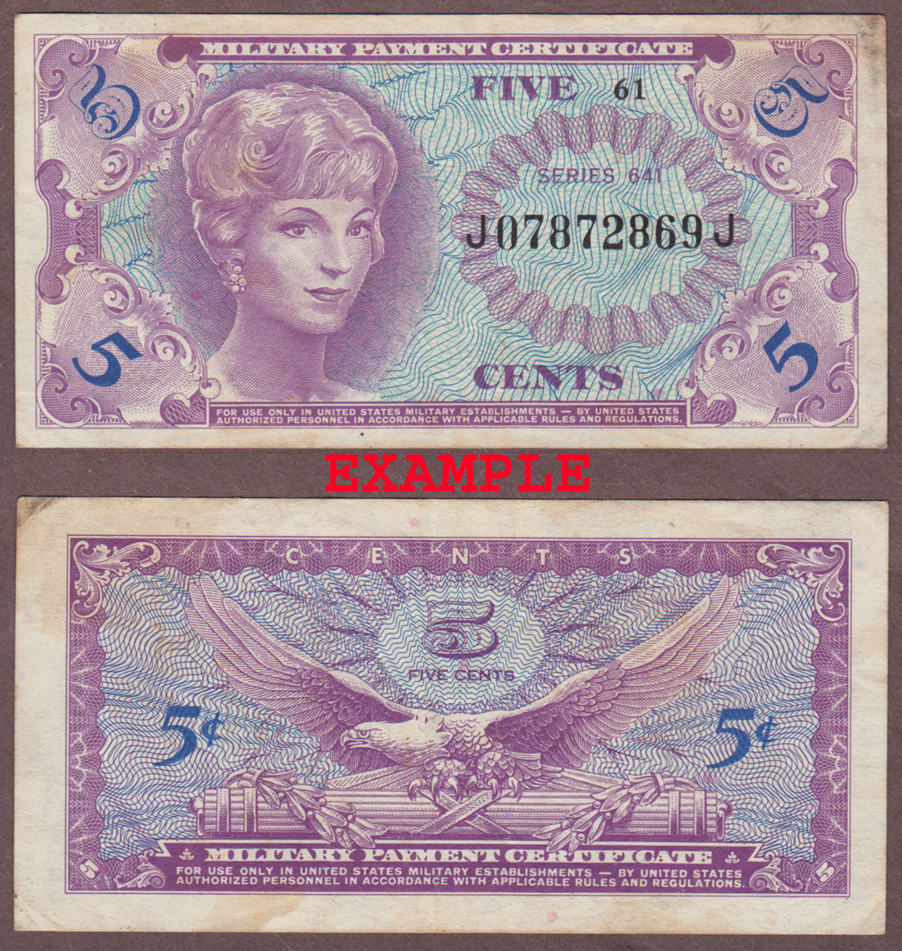 Item Number: MPC-209E Very Fine or Better - Used in Vietnam Issued 8-31-65 Withdrawn 10-21-68 - Front is purple and blue. Back is purple and blue.$6.00