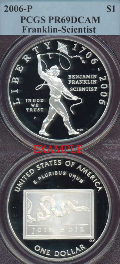 Item Number: MC-47E PCGS PR 69 DCAM - Franklin Scientist - .900 Fine Silver - Beautiful near perfect Deep Mirror Cameo Franklin commemorative dollar.$40.00