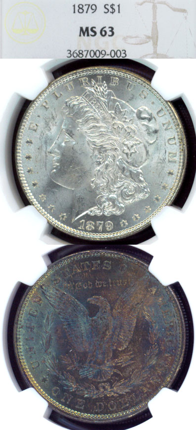 Item Number: MD-1309 NGC MS-63 - Sharp strike with great luster. Frosty white obverse with a attractively toned reverse with blue/green and bronze color. Mintage of 14,807,100$150.00