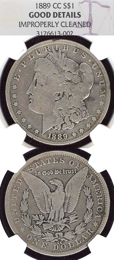 Item Number: MD-1223 NGC Good Details - Improperly Cleaned - THE KEY DATE to the Carson City Morgan Silver Dollars. A affordable example of this hard to find Morgan dollar. Mintage of only 350,000$750.00