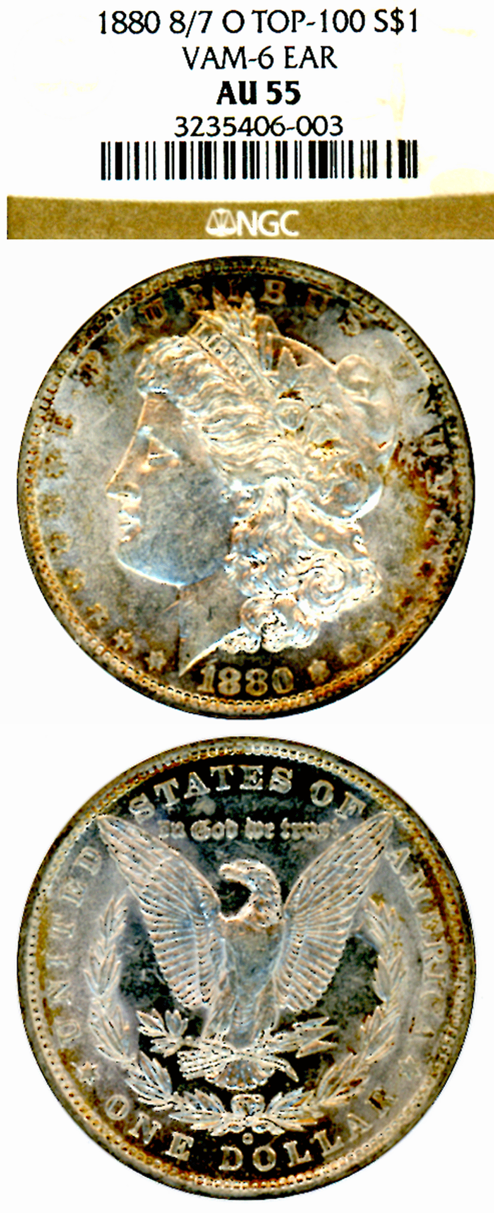 1880-O 8/7 $ VAM-6 EAR "TOP 100 VAM" NGC AU 55