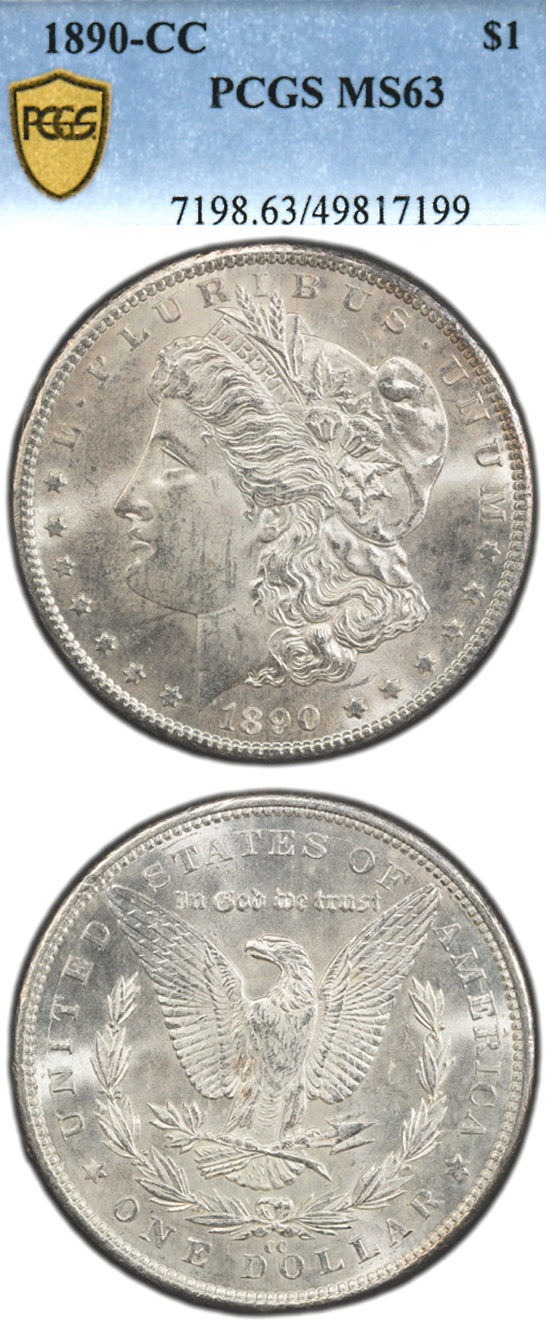 Item Number: MD-1675 PCGS Mint State 63 - Original frosty surfaces with great mint luster and strike. Tougher Carson City date especially in high grade. $1,575.00