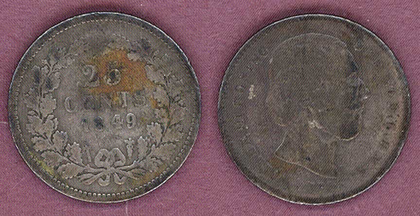 Item Number: NE-32 Good/Very Good - 25 Cent KM-81 .6400 Silver. Hard to find even in low grades. Ruler William III 1949-1890$60.00