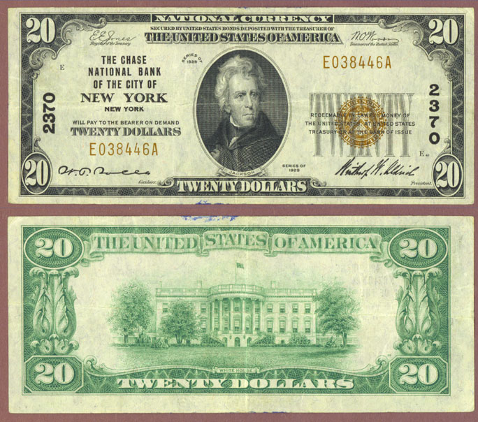 Item Number: SNBN-60 Very Fine - FR-1802-1 The Chase National Bank of the City of New York - Charter 2370. Very collectable example from this famous New York City bank.$95.00