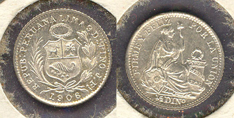 Almost Uncirculated+ 1/2 Dinero #206.2 .900 Silver Lima Mint. Clashed dies