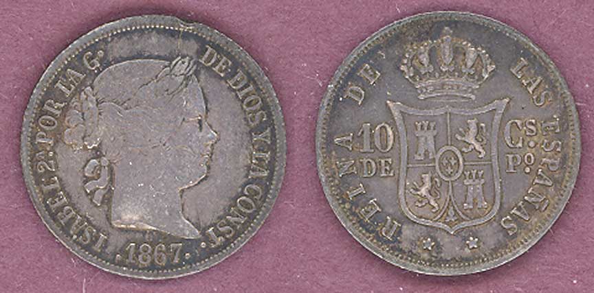 Item Number: PH-38 Very Fine - 10 Centavo #145 Silver - Original and uncleaned. This type was made for only 5 years 1864-68.$75.00