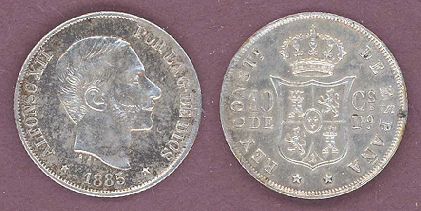 Item Number: PH-39 Almost Uncirculated - 10 Centavo #148 Silver - High grade with great detail. This type was made for only 6 years 1880-85.$50.00